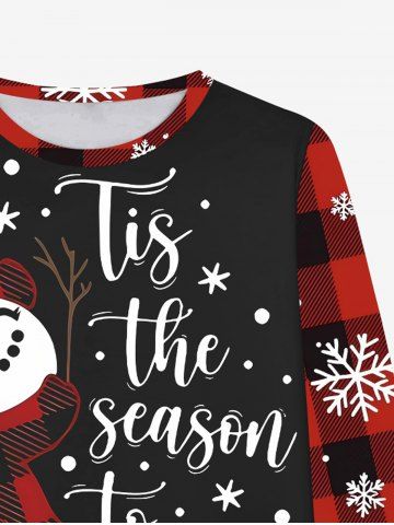 Plus Size Men's Christmas Plaid Snowflake Snowman Print Long Sleeves T-shirt - Red - S