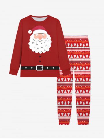 Plus Size Men's Christmas Santa Claus Buttons Belt Print Long Sleeves T-shirt - Red - M