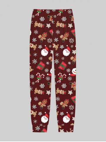 Plus Size Men's Christmas Santa Claus Snowflake Gingerbread Print Pajama Jogger Pants - Red - S