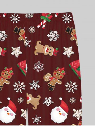 Plus Size Men's Christmas Santa Claus Snowflake Gingerbread Print Pajama Jogger Pants - Red - M
