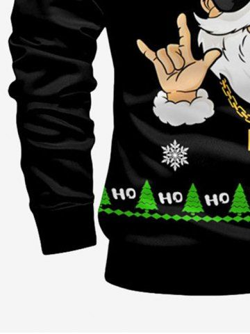 Plus Size Men's Christmas Tree Snowflake Santa Claus Microphone Print Zipper Polo Shirt - Black - M