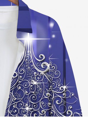 Plus Size Metallic Christmas Tree Glitter 3D Print Buttons Pocket Long Sleeve Shirt For Men - Sky Blue - 8xl