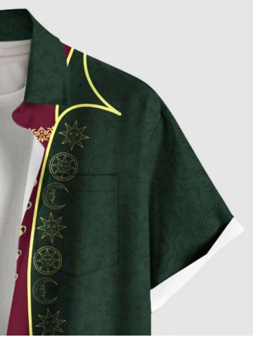 Plus Size Moon Sun Floral Lace Up 3D Print Buttons Pocket Shirt For Men - Green - 2xl