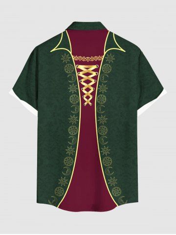 Plus Size Moon Sun Floral Lace Up 3D Print Buttons Pocket Shirt For Men - Green - 5xl