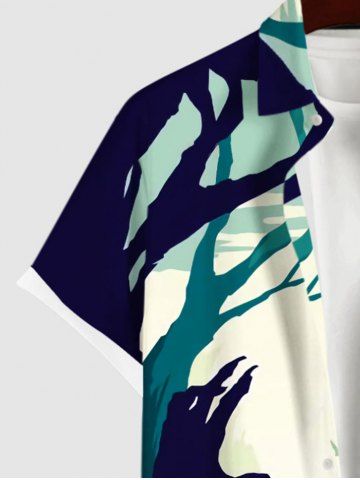 Plus Size Moon Tree Mountain River Palm Colorblock Print Halloween Button Pocket Shirt For Men - Multi-a - M
