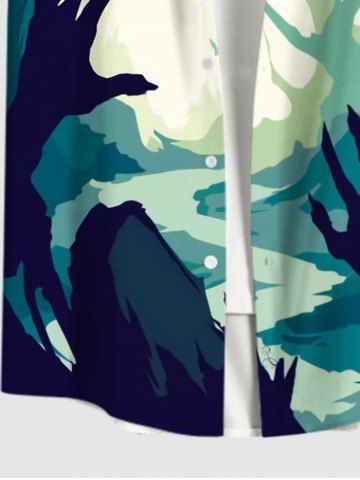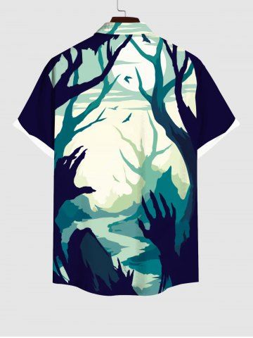 Plus Size Moon Tree Mountain River Palm Colorblock Print Halloween Button Pocket Shirt For Men - Multi-a - L