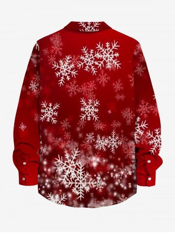 Plus Size Ombre Christmas Snowflake Glitter Stars Print Button Long Sleeves Shirt For Men - Red - Xl
