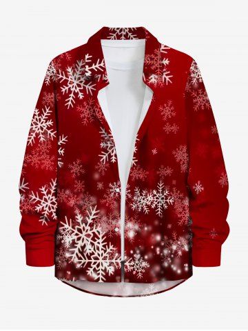 Plus Size Ombre Christmas Snowflake Glitter Stars Print Button Long Sleeves Shirt For Men - Red - 4xl
