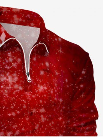 Plus Size Ombre Christmas Snowflake Print Zipper Polo Shirt For Men - Red - L