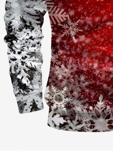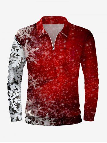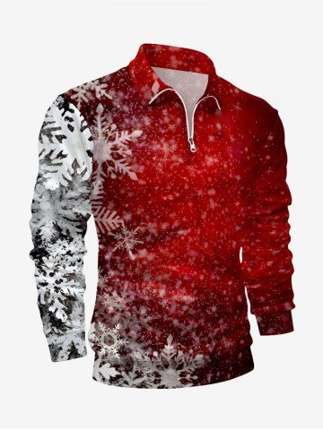 Plus Size Ombre Christmas Snowflake Print Zipper Polo Shirt For Men - Red - Xl