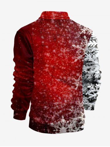 Plus Size Ombre Christmas Snowflake Print Zipper Polo Shirt For Men - Red - 2xl