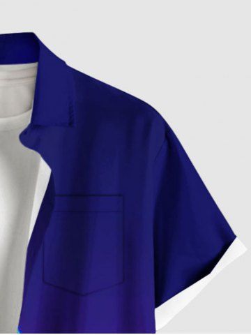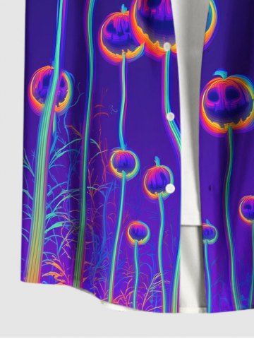 Plus Size Ombre Pumpkin Plant Galaxy Print Halloween Button Pocket Shirt For Men - Navy Blue - L