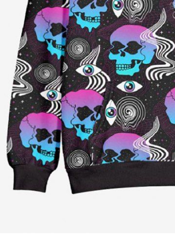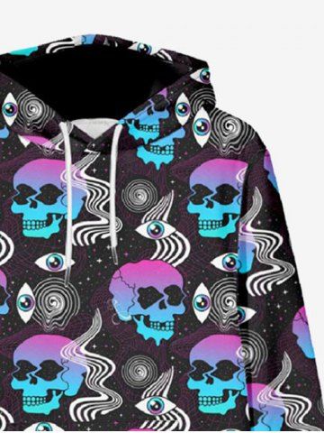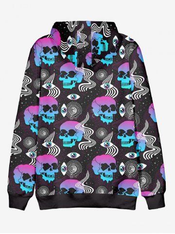 Plus Size Ombre Skull Eye Spiral Galaxy Print Halloween Pocket Drawstring Pullover Long Sleeves Hoodie For Men - Black - 3xl