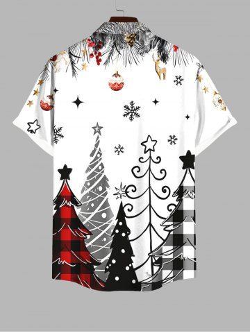 Plus Size Plaid Christmas Tree Snowflake Star Elk Print Button Pocket Shirt For Men - Multi-a - S