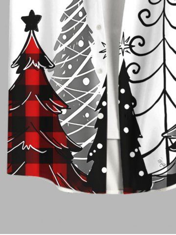 Men's Clothing > Plus Size Plaid Christmas Tree Snowflake Star Elk Print Button Pocket Shirt For Men