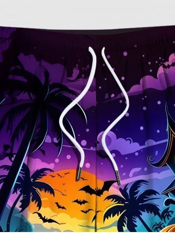 Plus Size Pumpkin Bat Coconut Tree Moon Castle Print Halloween Drawstring Pocket Beach Shorts For Men - Black - Xl