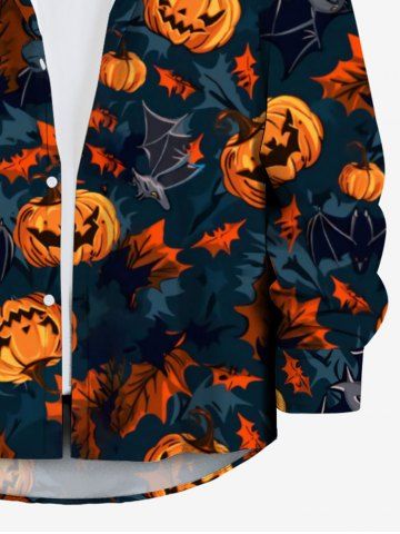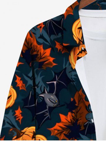 Men > Plus Size Pumpkin Bat Maple Leaves Print Halloween Button Shirt For Men
