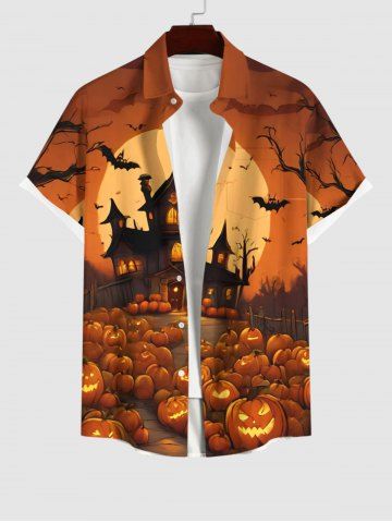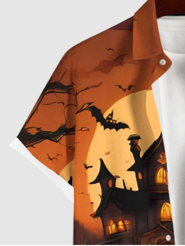 Men > Plus Size Pumpkin Bat Moon Castle Print Halloween Ombre Button Pocket Shirt For Men