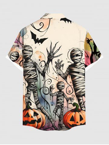 Plus Size Pumpkin Bat Mummy Print Halloween Button Pocket Shirt For Men - Apricot - 5xl