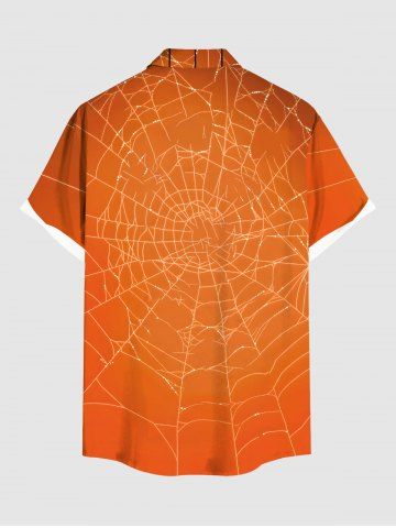 Men > Plus Size Pumpkin Bat Spider Web Print Halloween Button Pocket Shirt For Men