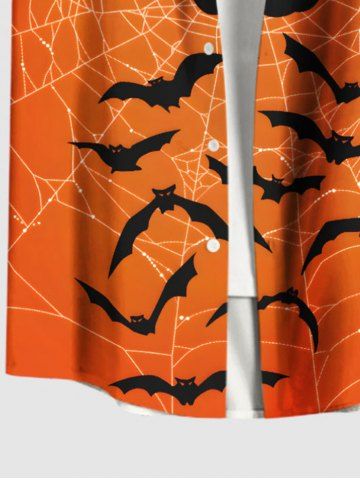 Men > Plus Size Pumpkin Bat Spider Web Print Halloween Button Pocket Shirt For Men