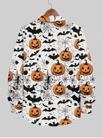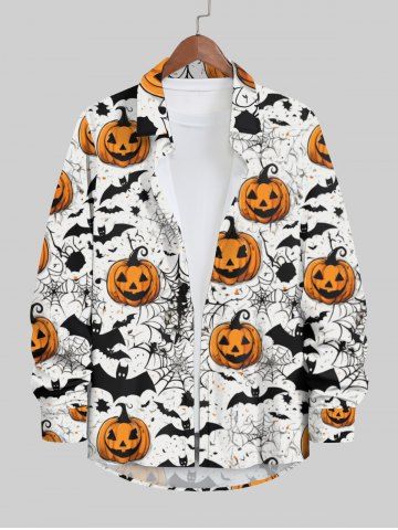 Plus Size Pumpkin Bat Spider Web Print Halloween Button Shirt For Men - Multi-a - 7xl