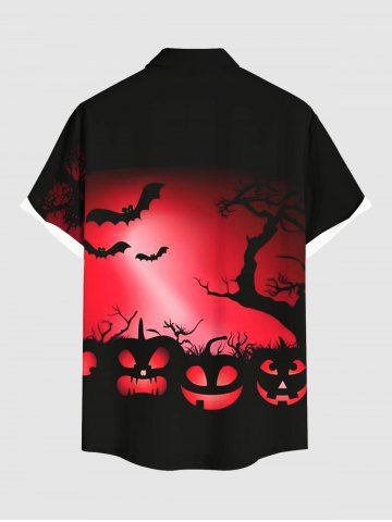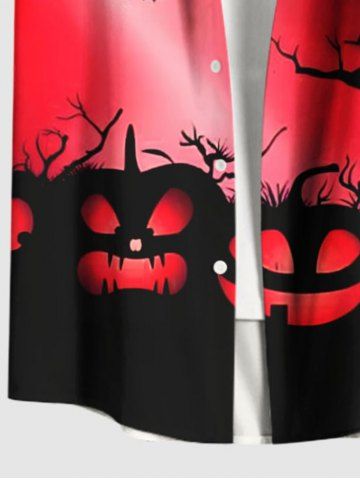Plus Size Pumpkin Bat Tree Dip Dye Ombre Print Halloween Button Pocket Shirt For Men - Red - M