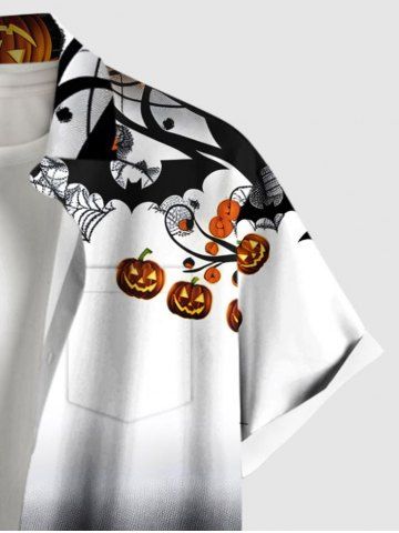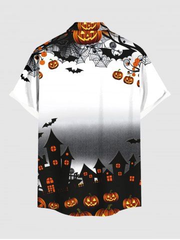 Plus Size Pumpkin Castle Bat Spider Web Ombre Print Halloween Button Pocket Shirt For Men - White - Xl