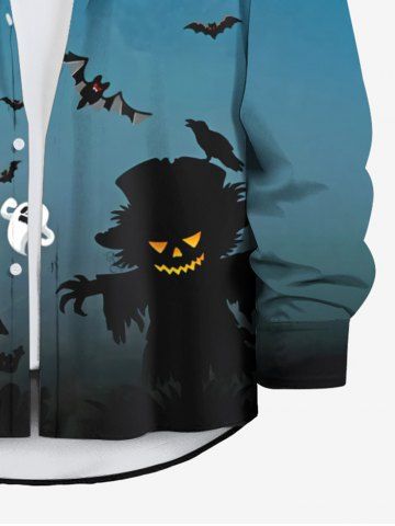 Plus Size Pumpkin Castle Ghost Bat Moon Print Halloween Button Shirt For Men - Blue - 6xl