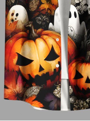 Men > Plus Size Pumpkin Ghost Bat Maple Leaf Print Halloween Button Pocket Shirt For Men