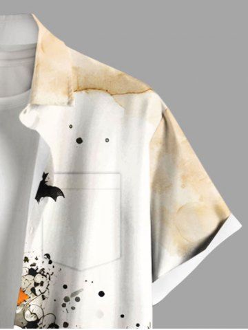Plus Size Pumpkin Ghost Bat Maple Leaf Print Halloween Button Pocket Shirt For Men - White - 5xl