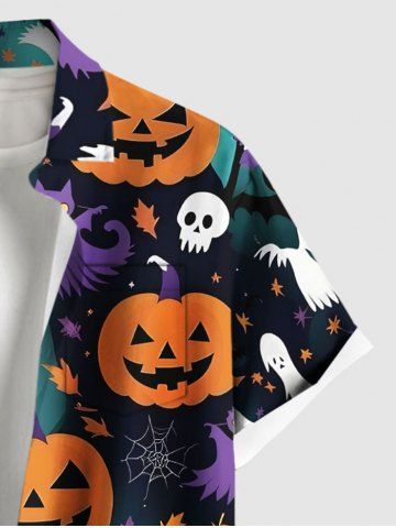 Men > Plus Size Pumpkin Ghost Bat Ombre Spider Web Print Halloween Button Pocket Shirt For Men