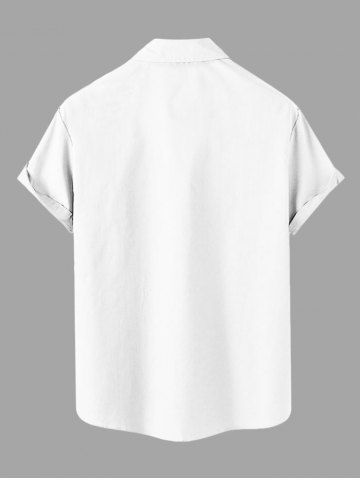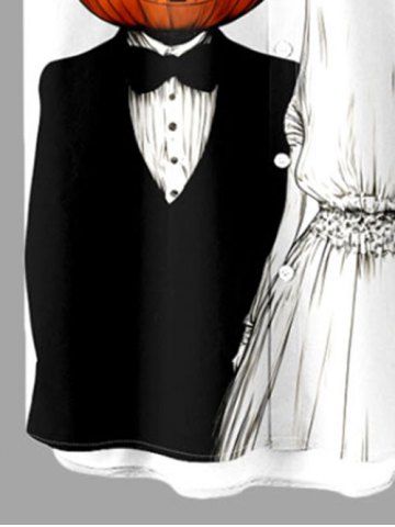 Plus Size Pumpkin Ghost Bride Bridegroom Crown Bat Tree Print Halloween Button Pocket Shirt For Men - White - 6xl