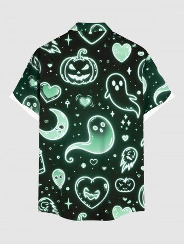 Plus Size Pumpkin Ghost Heart Moon Star Galaxy Print Halloween Ombre Button Pocket Shirt For Men - Black - Xl