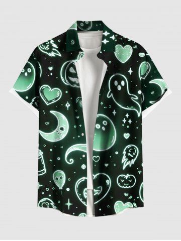 Men > Plus Size Pumpkin Ghost Heart Moon Star Galaxy Print Halloween Ombre Button Pocket Shirt For Men