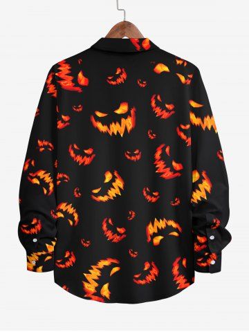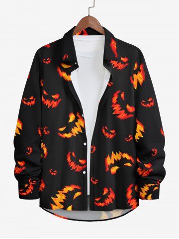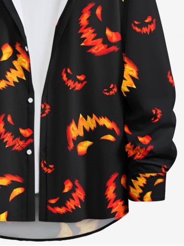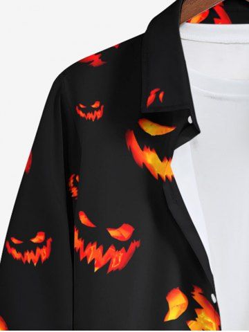 Plus Size Pumpkin Lantern Fire Flame Print Halloween Buttons Shirt For Men - Black - 7xl