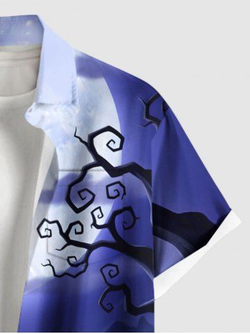 Men > Plus Size Pumpkin Lantern Skeleton Wizard Tree Moon Print Halloween Button Pocket Shirt For Men