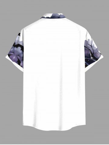 Plus Size Pumpkin Owl Tree Branch Moon Bat Print Halloween Button Pocket Shirt For Men - White - L