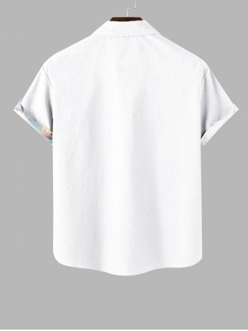 Plus Size Pumpkin Skeleton Bat Painting Splatter Print Halloween Button Pocket Shirt For Men - White - 2xl