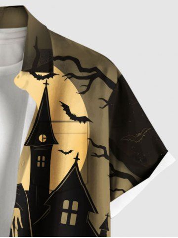 Plus Size Pumpkin Skull Castle Bat Tree Moon Print Halloween Button Pocket Shirt For Men - Black - Xl