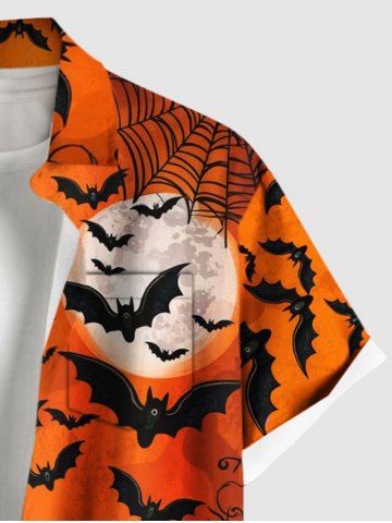 Men > Plus Size Pumpkin Spider Web Bat Moon Print Halloween Button Pocket Shirt For Men