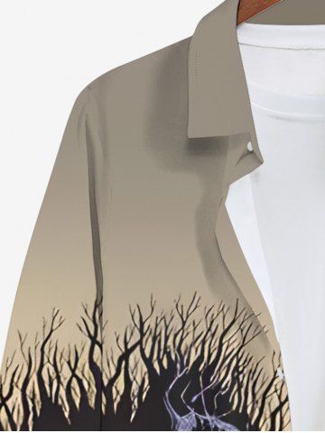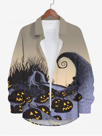 Plus Size Pumpkin Tree Branch Print Halloween Ombre Button Shirt For Men - Multi-a - M