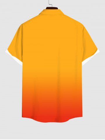 Plus Size Pumpkin Wizard Cross Bat Spider Web Print Halloween Ombre Button Pocket Shirt For Men - Dark Orange - M