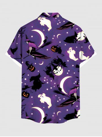 Plus Size Pumpkin Wizard Ghost Moon Star Ombre Galaxy Print Halloween Button Pocket Shirt For Men - Purple - S
