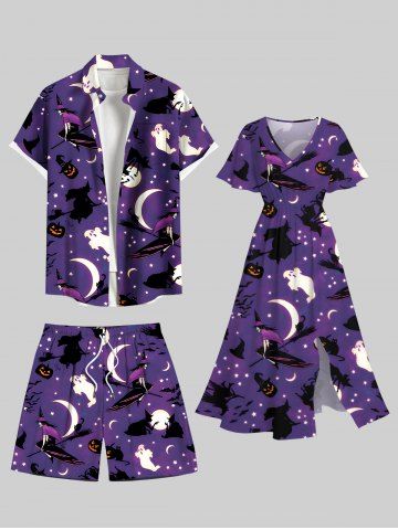 Plus Size Pumpkin Wizard Ghost Moon Star Ombre Galaxy Print Halloween Drawstring Beach Shorts For Men - Purple - 5xl