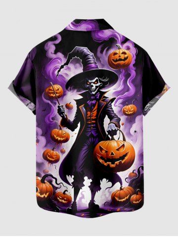 Plus Size Pumpkin Wizard Ombre Smoke Print Halloween Button Pocket Shirt For Men - Black - Xl