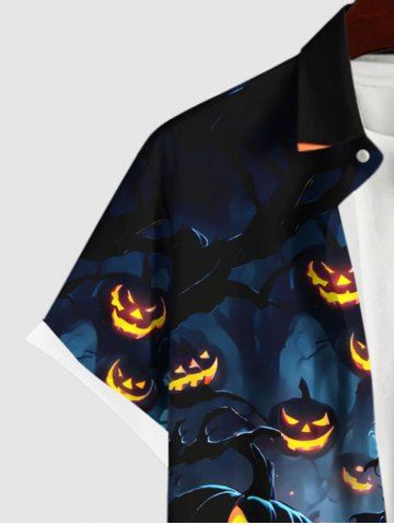 Men > Plus Size Pumpkin Wizard Tree Midnight Print Halloween Button Pocket Shirt For Men