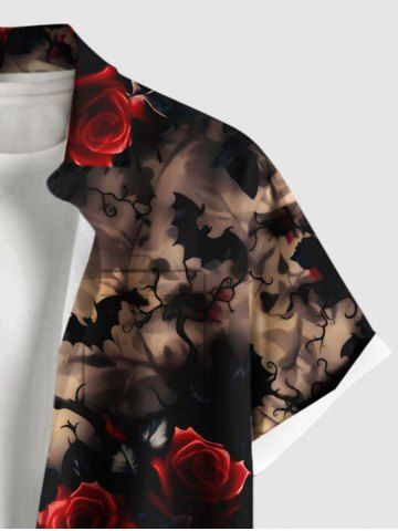 Men > Plus Size Rose Flower Bat Dark Style Print Halloween Button Pocket Shirt For Men