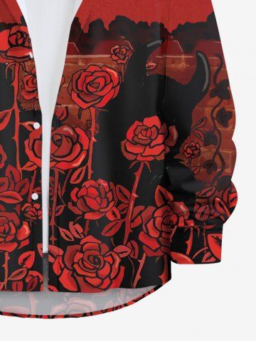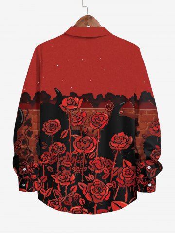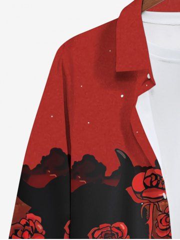 Plus Size Rose Flower Galaxy Print Halloween Button Shirt For Men - Red - Xl