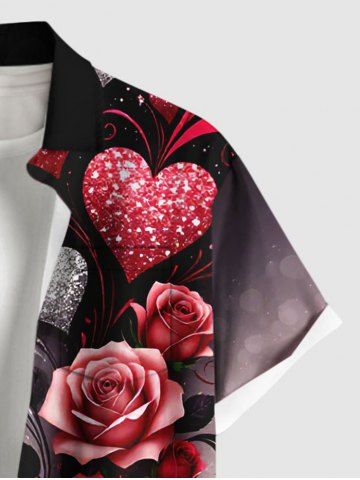 Plus Size Rose Flower Heart Dip Dye Ombre Print Valentines Button Pocket Shirt For Men - Black - Xl